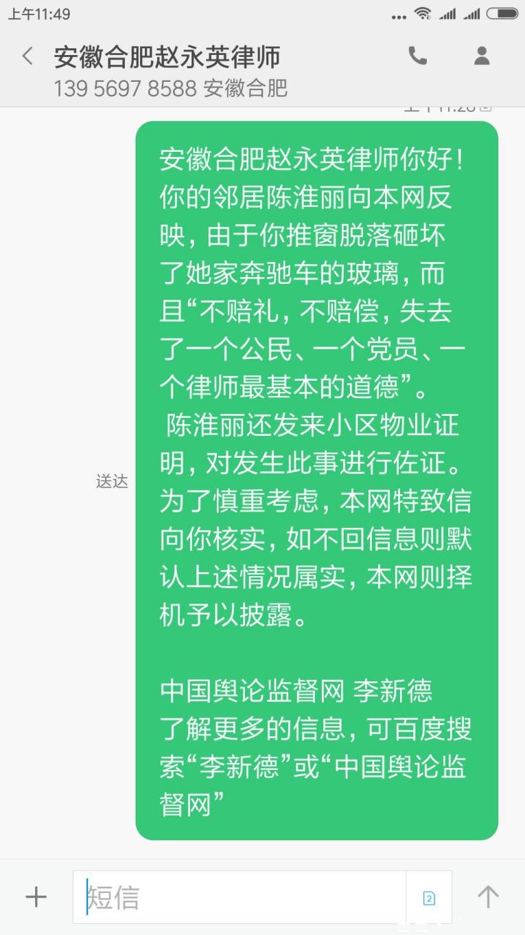 在接到陈女士的投诉后,为慎重起见,本网特致信向赵永英律师核实,并告知赵永英律师如不回信息则默认上述情况属实,本网则择机予以披露。