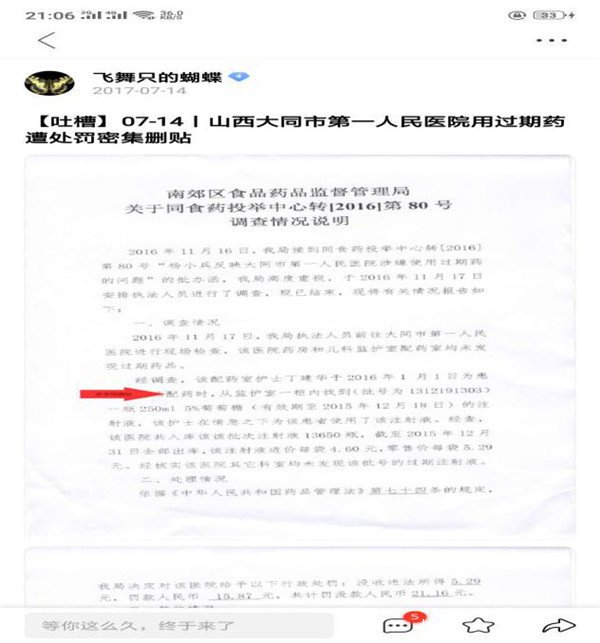 近日,看完当事人的举报材料后,编者对大同市第一人民医院进行了暗访发现,同时也在网络上看到好多患者反映该院情况。该院大夫工作态度确实存在上述类似问题,不知道面对病人身体疲劳不想多交流还是什么,有的患者反映跟部分大夫询问点事的确太难了,问多了都不愿意说,嫌烦,问少了咱们对自己病情都不了解,开得药如何吃,都不知道,多数人表示很无奈;在医院B超室仍存在院里内部关系插队,不交费用给大夫护士就可检查的问题;手术室收红包问题仍然存在。。。最严重的一个问题是,一医院很多科室大夫在给患者诊疗后配药都不在医院,而是给患者一个小纸条,上面写着药的名称,安顿到指定药店买药,然后大夫在中间吃回扣。近日举报人杨女士在复查身体时也遭遇到同样的问题。