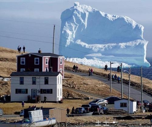 巨大冰山漂至加拿大沿海小镇 民众争相"看山"