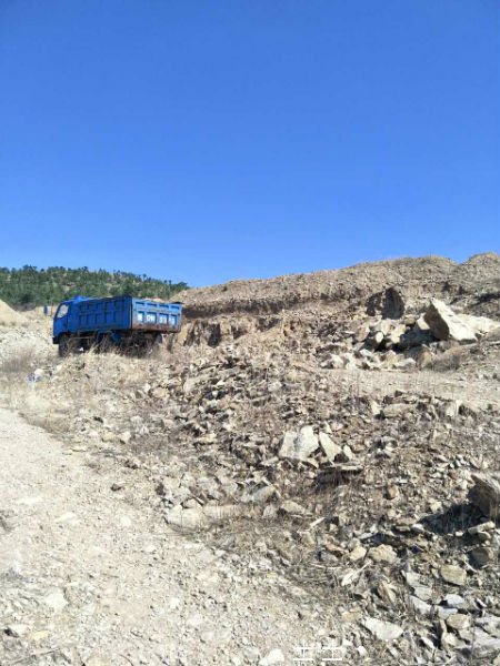 图为违法违规开办的采石场,该采石场未按规定办理审批手续。