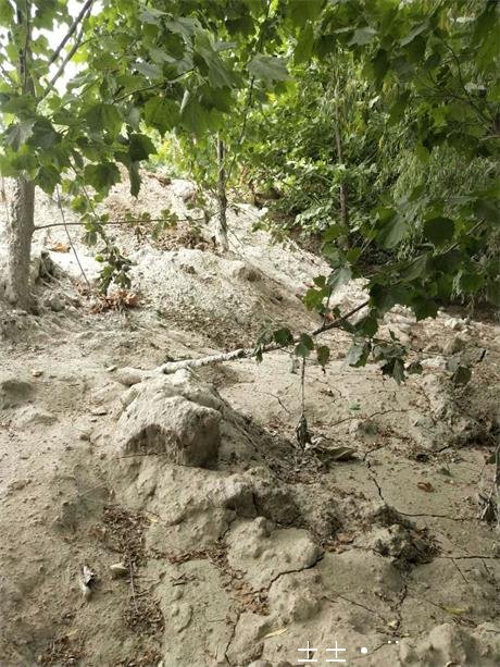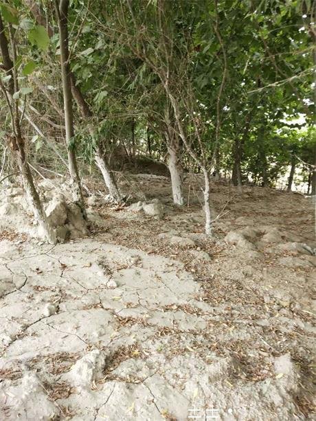 这家商混站用围墙围住,院子里堆满了没有任何覆盖的石子、大沙等建筑材料。商混站没有安装喷淋设施、车辆进出无任何冲洗。拉商混的罐车过后尘土飞扬,让人睁不开眼。好多随意外排的污水,已经干涸变成固体废物,周围的树木已经枯死。(附图)