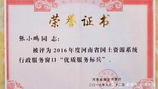 张小鹏担任登封市国土资源局行政服务科科长期间,始终把为人民提供优质服务时刻挂在心头。作为窗口工作人员,他坚持做到“三声”、“四不让”,即“来有应声,问有答声,走有送声”,“不让群众久等,不让群众为难,不让群众受气,不让群众反复跑路”。他还坚持每年拿出3000元工资资助贫困家庭。
