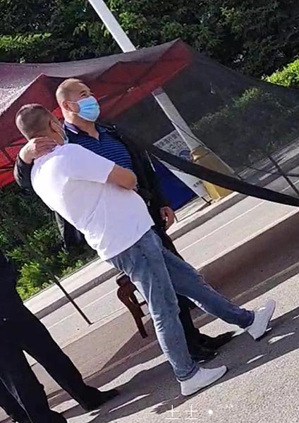 下午13:00,见到了王宝伟,一同前往他所说的龙镇小学校内水泥管厂,拍了照片和视频,随后我们来到了龙镇政府,见到了政府张镇长,把情况向他反映了,得到答复是你们媒体来了,我们需向五大连池市宣传部报备,大约过了几分钟,张镇长说宣传部答复了,我们不接受你们的采访,但是反映的情况我们可以做核实,然后根据五大连池市疫情防控的相关规定,你们哈尔滨来的,我们需要对你们进行点对点的交接,随后被派专职的宣传委员,护送到了龙镇农场的卡口,(这里说明一下,镇政府和农场是两个行政管理部门,当地居民称呼镇政府为地方,农场为场部)宣传委员和场部卡口的农场社区主任崔卓伟以及工作人员耳语了一番,社区主任开始以种种理由为难我们了,先问我们要去哪里,监督员说办完事有可能返回哈尔滨,要不然应该在这找宾馆住,工作人员问你们去哪家宾馆,监督员说没定呢,那不行你说是哪家宾馆,根据规定我们需对你们进行7天体温检测,我说哪里规定的,他说五大连池市疫情防控指挥部,我说你不让我们进去,我们可以返回哈尔滨,但是你们这种情况,我可以向市和省里疫情防控指挥部进行反映的,这下主任火了,爱哪告哪告,恼羞成怒,把矛头指向了王宝伟,你哥们啊,什么玩意儿?王宝伟说二哥我也没说什么呀,你和我急啥,人家监督网是到地方来了解点情况,也不是咱们农场的事,两个人争吵了起来,崔二哥做出了惊人的举动,夹着王宝伟的脖子就拽到了旁边,要和他找个没人的地方练练,被卡口的其他工作人员和警务人员制止了,(有视频为证)。