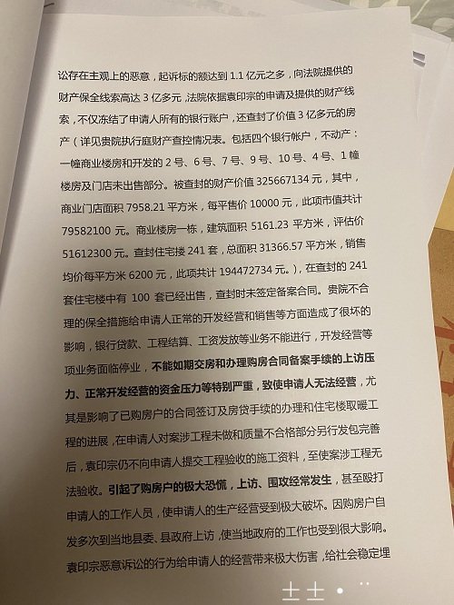 张贵波说,公司与袁印宗的建设工程施工合同纠纷案总标的为1.1亿多元(已支付8418多万元)。衡水市中级法院查封、冻结的他们公司资产价值多达3亿多元,明显属于超标的查封。