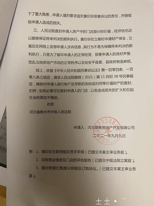 张贵波说,从2021年4月底开始,公司的银行贷款、税务缴纳、工程结算、工资发放等业务被停办,预售商品房不能办理购房合同备案手续,经营业务已经停止。衡水市中级人民法院超标的查封引发公司走向了破产边缘!