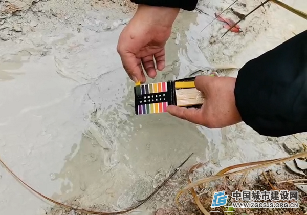 2025年3月28日,东阳市利越集团351国道改建工程混凝土搅拌站排出污水呈强碱性
