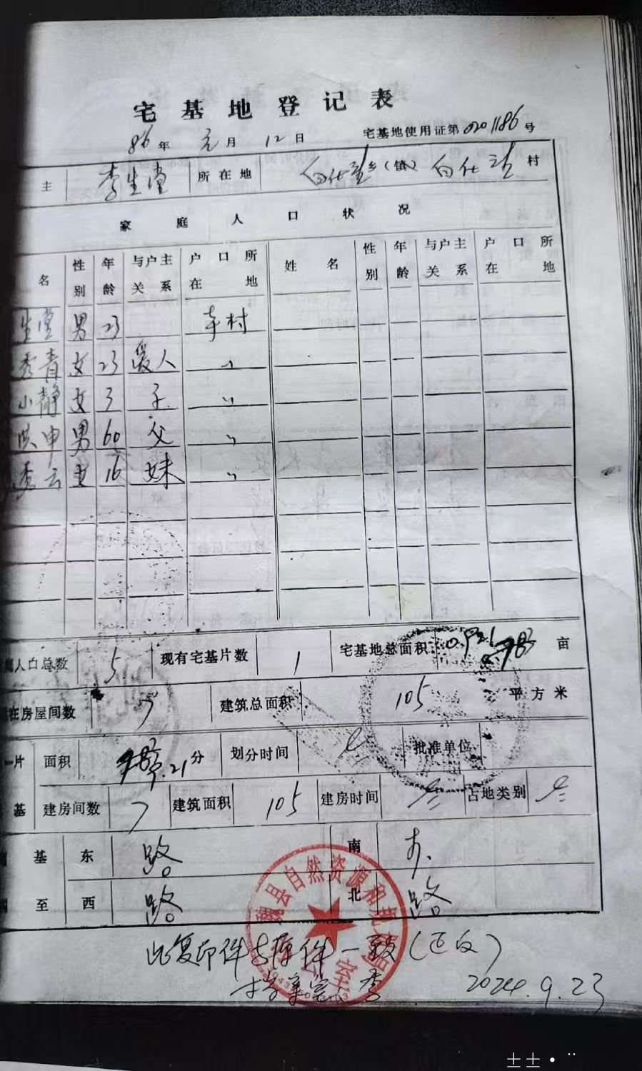 是不是侵害了李先生的权益,量一下宅基地的边界就可以明确。李先生1986年就办理了正式的宅基证,但后来宅基证不慎丢失,为此他专门到魏县自然资源和规划局,找到了宅基地登记表的原始档案,并进行了复印。不过,国土部门的宅基地登记表只登记四邻四至、总面积等数据,没有长与宽的具体数据。而正因为这个原因,加上几十年的老宅造成灰线深埋地下,李先生与邻居李某海的边界一直无法明确。