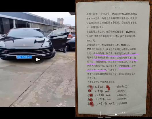 此外 ,张玉美还拖欠农民工养家糊口的血汗钱 ,却买百万保时捷豪车给赵春江开。