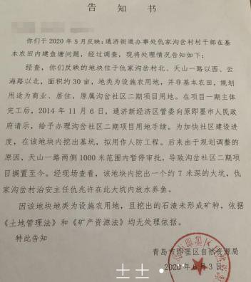 图十四:关于由和工业园即墨自然资源局出具的造假告知书