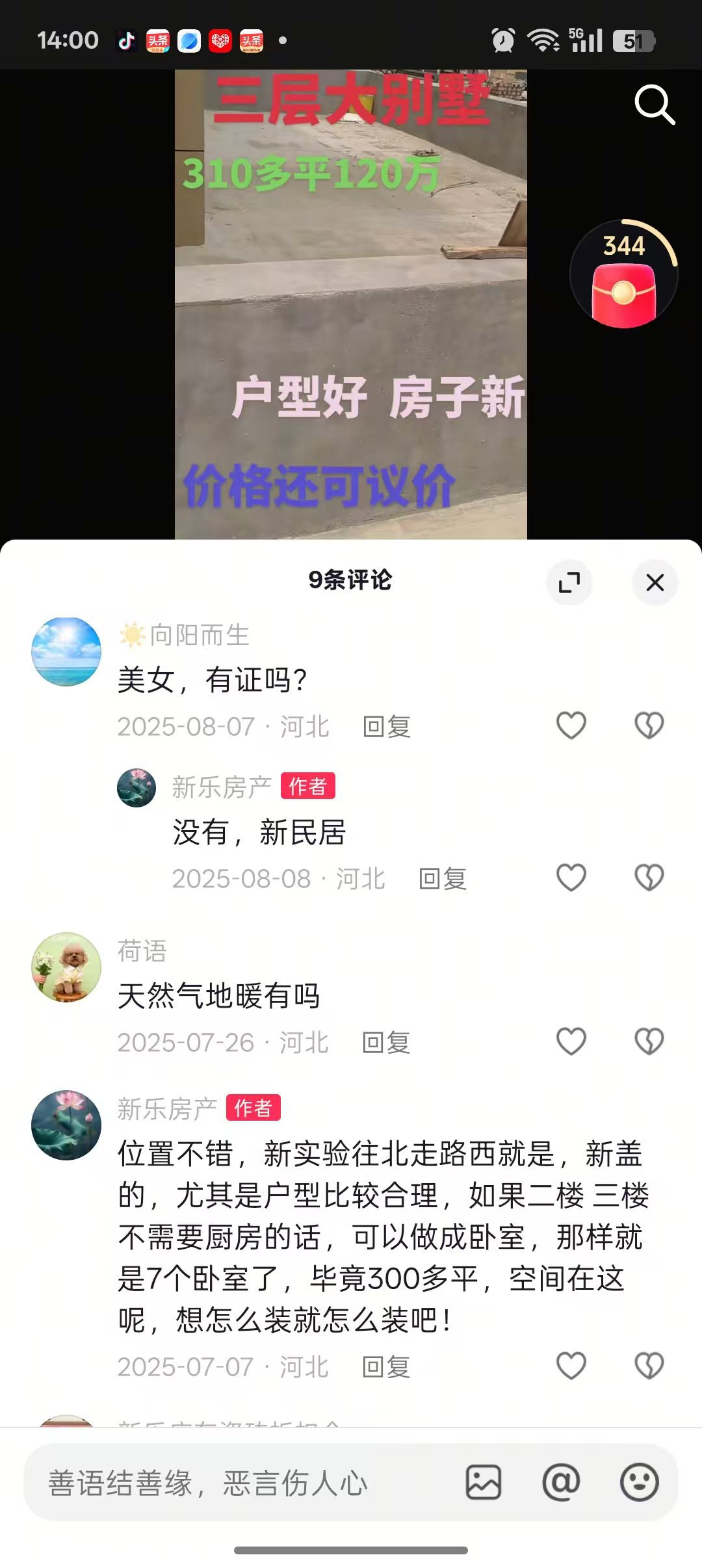 但黄家庄村的别墅项目却完全游离于监管之外:抖音平台2025年7月7日公开视频显示,当地一栋300多平米的毛坯三层别墅,户型按商品别墅标准设计,中介明确标注:是新民居、村证、报价一百多万元,价格可议。这种明显以销售为目的的别墅开发,既不符合宅基地“自住”的核心属性,也未取得建设用地规划许可,难道不属于典型的双重违规?
