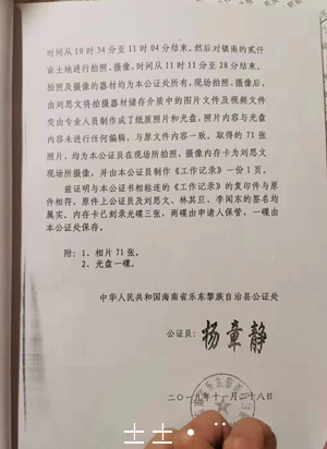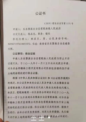 图:乐东黎族自治县莺歌海人民政府(2019)琼乐东证字第1171号公证书显示;乐东金邦椰林工程开发有限公司承包该镇五千亩土地均改变土地性质种植哈密瓜。