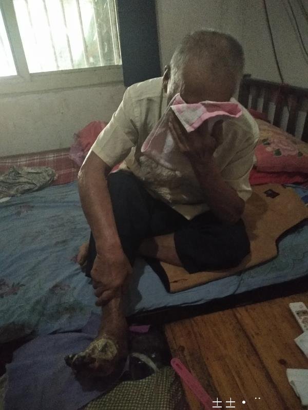 这是安徽省肥东县马湖乡小陶行政村87岁村民刘守标被当地村党支部书记和乡政府少数官员安排人打伤后的悲惨状况,如今他的伤口化脓,露出骨头,在家等死无人过问。